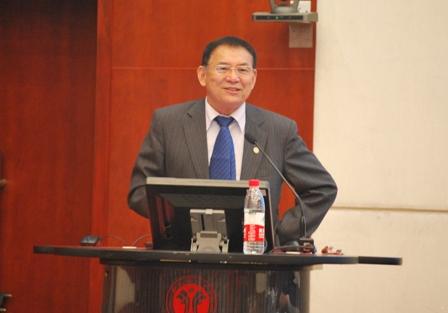 ????????? 本次年會的主題發言于上午十點準時開始,由中國國際經濟貿易法學研究會副會長、清華大學法學院車丕照教授主持。國務院學位委員會法學學科組成員、中國國際經濟貿易法學研究會會長、澳門科技大學法學院院長沈四寶,最高人民法院民四庭庭長羅東川,中國國際經濟貿易法學研究會副會長、北京大學法學院教授邵景春,中國國際經濟貿易仲裁委員會副秘書長李虎,中國國際經濟貿易法學研究會副會長、復旦大學法學院教授張乃根,緬甸總檢察長辦公室副處長欽欽芙先后作了主題發言。