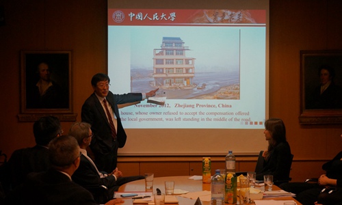 24日,代表團前往維也納大學法學院參加“首屆中國—奧地利憲法對話”。本屆中奧憲法對話的主題為“人權保障與憲法審查”,由維也納大學法學院、漢斯·凱爾森研究所與中國憲法學研究會、中國人民大學法學院共同主辦。會議由維也納大學法學院國家法與行政法研究所Manfred Stelzer教授與Ewald Wiederin教授共同主持,在為期一天的研討會中,雙方共發表了10篇報告。中方學者的報告主題為(依報告順序):在違憲審查缺位的背景下努力保障基本人權(童之偉教授)、中國的違憲審查制度(王磊教授)、中國違憲審查制度的特點(胡錦光教授)、基本權利的中國面向與憲法實施(秦前紅教授)、立憲主義在中國的前景與挑戰(韓大元教授);奧方學者的報告主題為(依報告順序):奧地利憲法審查制度:從集中型走向混合型,憲法法院法官的任命及其地位:獨立性與政黨影響,憲法審查程序,奧地利的人權保障——司法與司法外保障,奧地利的人權——以財產權為例。