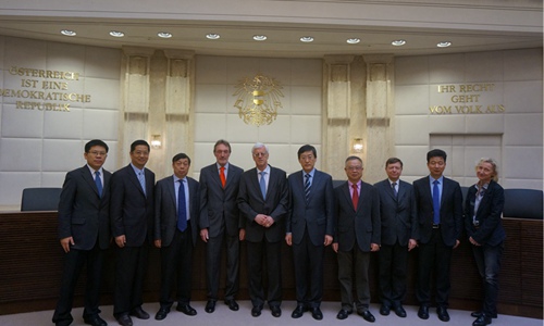 ????????2014年4月22日至26日,以中國人民大學法學院院長、中國憲法學研究會會長韓大元教授為團長的中國憲法學研究會代表團訪問奧地利,參加首屆中國—奧地利憲法對話“人權保障與憲法審查”,并訪問奧地利憲法法院、奧地利最高法院及漢斯·凱爾森研究所,擴大中奧學術交流與合作。