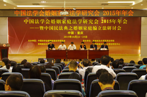 2015年10月24日上午9:00,中國法學會婚姻家庭法學研究會2015年年會開幕式在西南政法大學圖書館學術報告廳隆重召開。本次會議由西南政法大學民商法學院外國法及婦女理論研究中心共同承辦。中國法學會婚姻家庭法學研究會副會長兼秘書長李明舜教授擔任主持人,在主席臺就座的領導有:西南政法大學商文江副校長,重慶市法學會陳忠東秘書長,中國法學會研究部李存捧副主任,中國法學會婚姻家庭法學研究會會長夏吟蘭教授,西南政法大學民商法學院院長趙萬一教授。出席會議的人員有來自祖國各地的中國法學會婚姻家庭法學研究會的會員和司法實務界的法官、律師等,西南政法大學的部分師生出席此次會議。