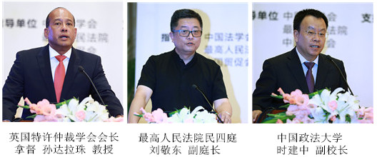 會議主旨發言階段由英國特許仲裁學會會長拿督孫達拉珠教授主持。最高人民法院民四庭劉敬東副庭長在發言中表示,最高院一直支持仲裁事業的發展,周強院長指出“仲裁與訴訟是雙色花、并蒂蓮的關系”, 應建立健全訴訟與非訴訟機制的銜接機制,為仲裁事業的發展提供有力支持,并簡要介紹了最高院關于實體審查逐級上報規則修訂的相關情況。中國政法大學副校長時建中在發言中介紹了中國修訂民法典的相關情況。