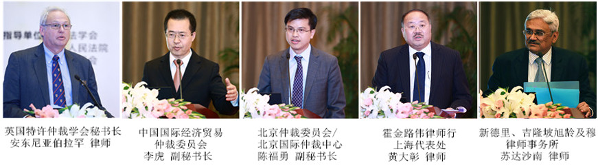 主題論壇階段分為四個單元,分別以“一帶一路機遇中仲裁機構、司法機構和律師的角色” “商事仲裁與投資仲裁:兩種不同的道路”“機構仲裁和臨時仲裁的選擇”“專項仲裁在一帶一路中的角色”為主題。發表主題講話的專家學者律師包括:英國特許仲裁學會秘書長安東尼亞伯拉罕律師、中國國際經濟貿易仲裁委員會副秘書長李虎、北京仲裁委員會/北京國際仲裁中心陳福勇副秘書長、國際商會北亞地區仲裁與ADR主任范銘超博士、IBM前法律總顧問唐功遠博士、霍金路偉律師行上海代表處黃大彰律師、Rajiv Dutta資深出庭代訟人,新德里、吉隆坡旭齡及穆律師事務所蘇達沙南律師、香港孖士打律師行合伙人、香港律師會蘇紹聰會長、北京國際論壇代表盧松教授、銅紫荊星章授勛者,國際仲裁專家楊良宜教授(香港)、四川仲裁法學研究會董緒公會長、君合律師事務所合伙人陳魯明律師、北京金誠同達律師事務所主任趙平律師、中國貿仲陳建副研究員、陶景洲大律師代表鐘莉律師、北京京都律師事務所高級合伙人郭慶律師、新加坡立杰律師事務所高級合伙人國際仲裁業務主管葉寶龍高級律師、新加坡謝爾曼·思特靈律師事務所易杰明律師、香港德輔大律師事務所王鳴峰資深大律師、品誠梅森律師事務所北京代表處合伙律師陳希佳博士、Dentons新加坡瑞德律師事務所涉華國際仲裁總監葛黃斌先生、中倫律師事務所合伙人霍偉律師、對外經濟貿易大學法學院薛源教授、環中商事仲裁微信群代表王雪華律師、香港李偉斌律師事務所合伙人楊文聲律師、香港圓畔達律師事務所高涵大律師、香港學院大律師事務所黃勁大律師、香港國際仲裁中心副秘書長劉京先生、新加坡國際仲裁中心中國首席代表馮璞女士、北京德和衡律師事務所劉克江主任、北京盈科(長春)律師事務所何春麗律師。