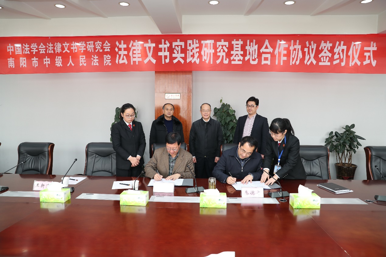 1月26日上午,中國法學會法律文書學研究會與河南省南陽市中級人民法院《共建法律文書實踐研究基地協議》