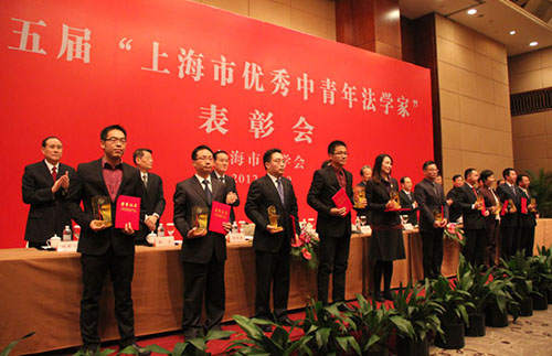 ????????第五屆“上海市優秀中青年法學家”表彰會于2012年11月30日在錦江小禮堂隆重舉行。此次被授予“上海市優秀中青年法學家” 榮譽稱號的是:上海財經大學法學院宋曉燕教授(女)、華東政法大學《法學》雜志副主編孫萬懷教授、上海交通大學凱原法學院副院長楊力教授、華東政法大學楊代雄教授、上海市高級人民法院金融庭庭長楊路、上海交通大學凱原法學院院長助理許多奇教授(女)、上海市委政法委研究室處長黃愛武教授、上海政法學院刑事司法學院院長姚建龍教授、上海市人民檢察院研究室副主任張少林、華東政法大學知識產權學院副院長黃武雙教授。市委常委、市委政法委書記丁薛祥,中國法學會副會長胡忠,市高院院長應勇,市法學會會長吳光裕等出席表彰會,并為第五屆“上海市優秀中青年法學家”頒獎。