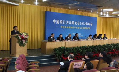?????????? 2012年11月24日至25日,由中國銀行法學研究會主辦、北方工業大學文法學院法律系承辦的中國銀行法學研究會2012年年會在北京北方工業大學盛大開幕。來自銀監會、人民銀行、最高人民法院以及各大專院校、商業銀行、政策性銀行及資產管理公司的百余位專家學者及實務屆人士出席了會議。各位專家學者、實務界代表在一天半的時間里圍繞“中國金融體制改革及銀行法律制度建設”這一會議主題,從金融體制改革、金融監管、金融創新等角度展開了學術交流。