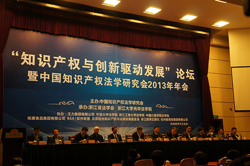 ????????2013年11月2日-3日,“知識產權與創新驅動發展”論壇暨中國知識產權法學研究會2013年年會在杭州隆重舉行。本次會議由中國知識產權法學研究會主辦,浙江省法學會和浙江大學光華法學院聯合承辦。會議匯集了國家立法、司法、行政主管機關的有關領導和國內外著名高校、研究機構的專家學者以及知名企業代表近500人。