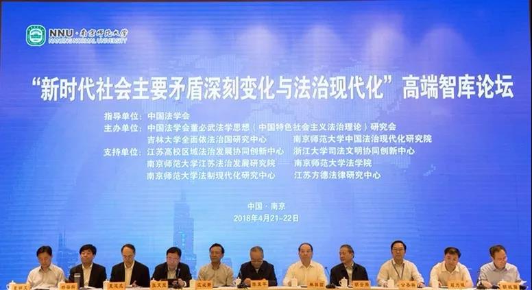 4月21日,由中國法學會指導,中國法學會董必武法學思想(中國特色社會主義法治理論)研究會、吉林大學全面依法治國研究中心、南京師范大學中國法治現代化研究院共同主辦的“新時代社會主要矛盾深刻變化與法治現代化”高端智庫論壇在南京開幕。