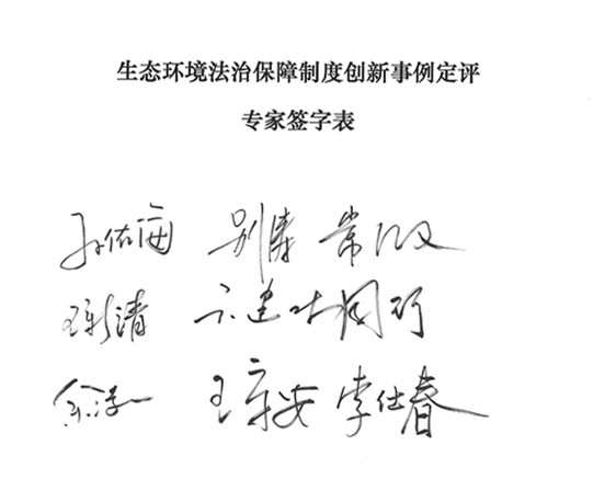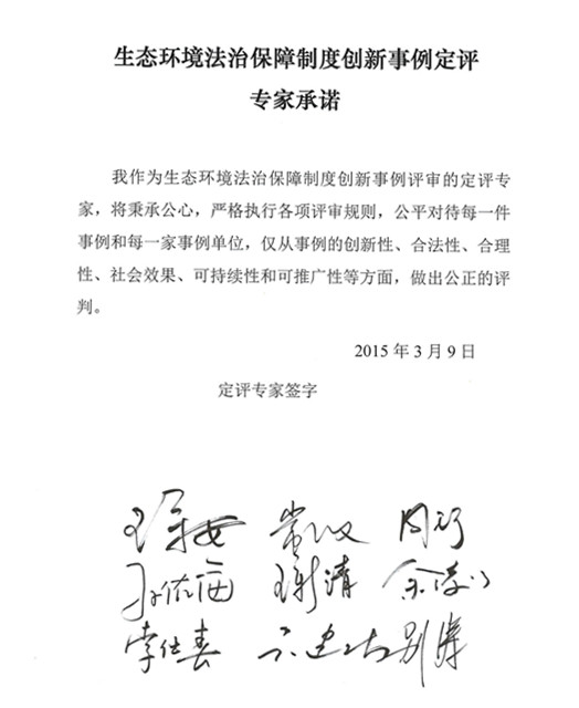 ????????隨后,中國法學會法律信息部呂興煥副主任和王偉國副主任分別宣讀了《生態環境法治保障制度創新事例定評辦法(草案)》和專家承諾書,全體評審專家一致通過了定評辦法,并在承諾書上簽名。