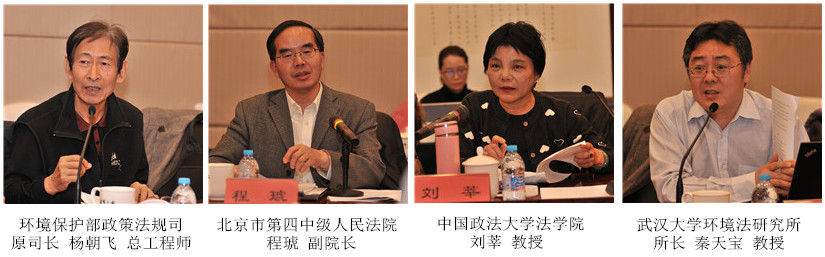 中國工業環保協會會長、環境保護部政策法規司原司長楊朝飛總工程師,北京市第四中級人民法院程琥副院長,中國法學會行政法學研究會副會長、中國政法大學法學院劉莘教授,中國法學會環境資源法學研究會副會長兼秘書長、武漢大學環境法研究所所長秦天寶教授,中國法學會環境資源法學研究會常務理事、湖南師范大學法學院副院長李愛年教授,中國法學會環境資源法學研究會常務理事、西北政法大學環境資源法教研室主任韓利琳教授,中國法學會環境資源法學研究會常務理事、江西理工大學環境資源法研究中心常務副主任王世進教授,中國法學會環境資源法學研究會常務理事、北京理工大學法學院環境法研究所所長羅麗教授,中國法學會環境資源法學研究會常務理事、西安交通大學法學院胡德勝教授,上海社會科學院法學研究所環境法中心主任何衛東副研究員,中國科學院地理科學與資源研究所楊林生研究員,中國法學會環境資源法學研究會常務理事、天津大學中國綠色發展研究院副院長張建偉教授,遼寧大學環境資源法研究中心主任劉佳奇副教授等相關領域的知名專家學者參加會議并發表修改建議。