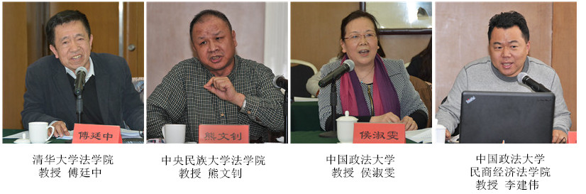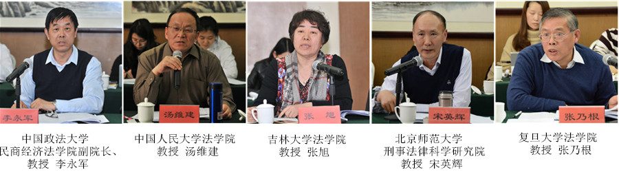 中國法學會行政法學研究會名譽會長、中國政法大學終身教授應松年,中國法學會法理學研究會副會長、中國衛生法學會副會長、清華大學法學院教授王晨光,中國法學會財稅法學研究會會長、北京大學法學院教授劉劍文,中國法學會社會法學研究會常務副會長、中國人民大學法學院黨委書記、教授林嘉,中國法學會行政法學研究會副會長、網絡與信息法學研究會常務副會長兼秘書長、中國社科院法學研究所研究員周漢華,中國法學會知識產權法學研究會副會長兼秘書長、中國人民大學法學院教授郭禾,中國法學會立法學研究會副會長兼秘書長、中國人民大學法學院教授馮玉軍,中國法學會環境資源法學研究會副會長兼秘書長、武漢大學法學院教授秦天寶,中國法學會保險法學研究會副會長兼秘書長、北京航空航天大學法學院教授任自力,中國法學會證券法學研究會副會長兼秘書長、中央財經大學法學院教授邢會強,中國法學會憲法學研究會副會長、中國社會科學院大學教授馬嶺,中國法學會民法學研究會副會長、中國政法大學民商經濟法學院副院長、教授李永軍,中國法學會民事訴訟法學研究會副會長、中國人民大學法學院教授湯維建,中國刑法學研究會副會長、吉林大學法學院教授張旭,中國刑事訴訟法學研究會副會長、北京師范大學刑事法律科學研究院教授宋英輝,中國法學會國際經濟法學研究會副會長、復旦大學法學院教授張乃根,中國海商法協會常務理事、清華大學法學院教授傅廷中,中國法學會立法學研究會副會長、中央民族大學法學院教授熊文釗,中國法學會立法學研究會副會長、中國政法大學教授侯淑雯,中國法學會商法學研究會秘書長、中國政法大學民商經濟法學院教授李建偉等相關領域的知名專家學者參加會議。
