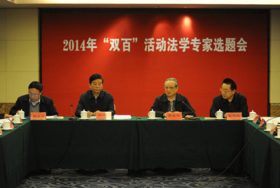 3月18日,2014年“雙百”活動法學專家選題會在北京召開。中國法學會黨組書記、常務副會長陳冀平,中國法學會副會長兼秘書長鮑紹坤,中國法學會副會長張鳴起,中國法學會副會長、學術委員會主任張文顯出席會議。選題會由陳冀平主持,鮑紹坤作了2013年“雙百”活動組織開展情況和2014年選題醞釀情況的說明。與會專家學者對2014年“雙百”活動選題和集體備課分組及相關工作安排進行了討論。
