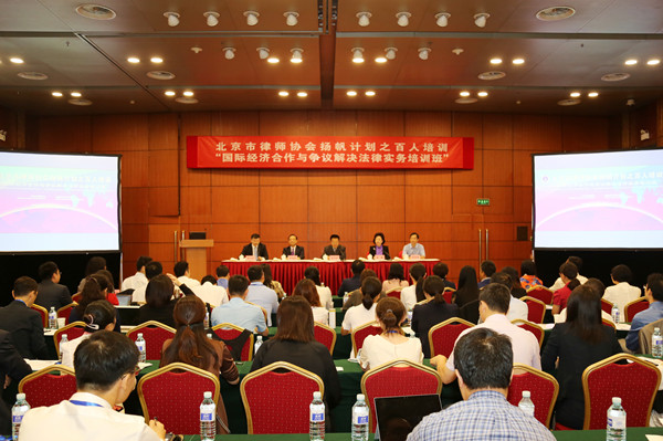 2018年9月1日,由中國法學學術交流中心與北京市律師協會共同主辦的北京市律師協會揚帆計劃之百人培訓第三期“國際經濟合作與爭議解決法律實務培訓班”在北京友誼賓館舉行開班儀式。中國法學會副會長張鳴起出席開班儀式并講話,北京市律師協會副會長張巍代表北京市律師協會致辭,天達共和律師事務所彭楠律師代表培訓班全體學員發言。開班儀式由北京市律師協會外事委員會主任王正志主持,來自高文、京師、盈科、中銀、錦天城等40家北京市屬律師事務所共計60余人參加了本次培訓。開班儀式結束后,由商務部中國國際電子商務中心研究院李鳴濤院長為培訓學員就“跨境電子商務發展與國際電子商務大市場建設”做第一場專題講座,中國法學學術交流中心主任尹寶虎出席并主持講座。