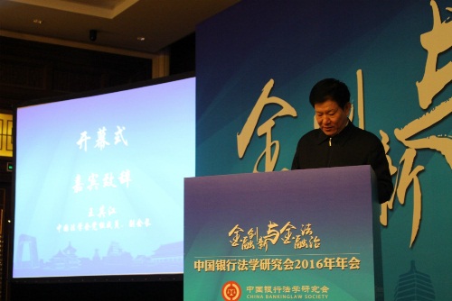 2016年11月12日,由中國銀行法學研究會主辦,中國民生銀行協辦的“金融創新與金融法治——中國銀行法學研究會2016年年會”在北京遼寧大廈舉行。論壇由中國銀行法學研究會副會長岳彩申主持。中國法學會黨組成員、副會長王其江、中國銀行法學研究會會長王衛國、最高人民檢察院公訴廳廳級檢察員聶建華出席年會并講話。