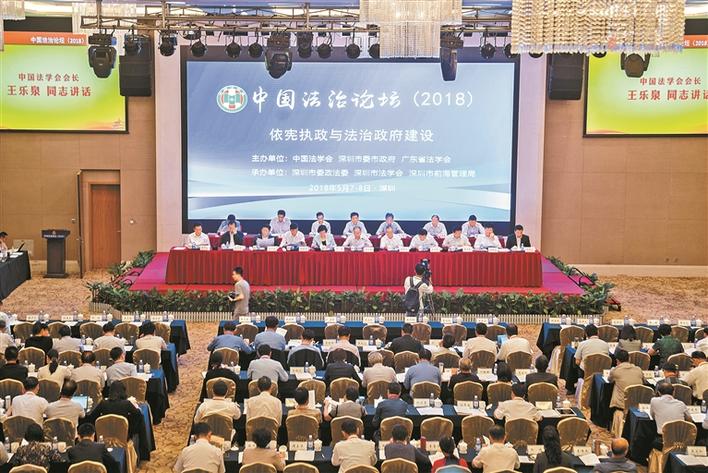 晶報訊(記者 陸洋 通訊員 任民 鄧子良/文、圖)昨日,中國法治論壇(2018)在深圳舉行。本次論壇由中國法學會、深圳市委市政府和廣東省法學會聯合主辦,主題為“依憲執政與法治政府建設”。中國法學會會長王樂泉出席論壇并講話。中國法學會黨組書記、常務副會長陳冀平主持論壇開幕式,并作總結講話。司法部副部長趙大程,廣東省人大常委會副主任羅娟出席論壇開幕式并致辭。中國法學會副會長鮑紹坤、張鳴起、張文顯、王其江、張蘇軍、徐顯明、郎勝、朱孝清、任海泉、李林等出席論壇。
