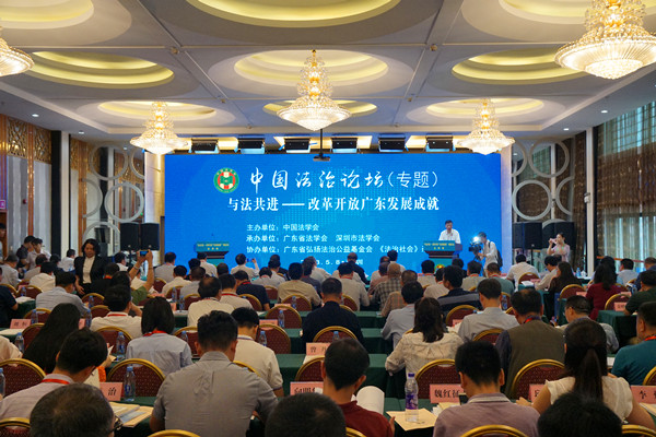論壇由中國法學會主辦,廣東省法學會和深圳市法學會聯合承辦。中國法學會黨組書記、常務副會長陳冀平作主旨演講。廣東省委常委、政法委書記何忠友出席論壇并致辭。中國法學會黨組成員、副會長鮑紹坤主持論壇,黨組成員、副會長張文顯,第十二屆全國人大法律委員會主任委員喬曉陽,中國與全球化智庫主席龍永圖,廣東省法學會會長梁偉發作主題演講。