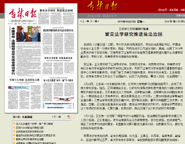 吉林日報頭版報道王樂泉會長在吉林調研點擊左側藍色字體或者上面的圖片可以查看原文報道