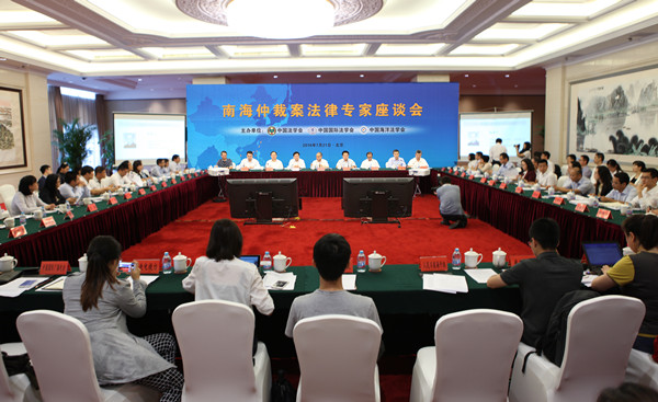 來自外交部、國家海洋局、中國社科院、中國政法大學、清華大學、國際關系學院、外交學院、北京師范大學、武漢大學、廈門大學、海南大學、上海交通大學、華東政法大學等國家部委、高校院所的知名海洋法、國際法專家學者60余人齊聚座談會,對南海仲裁案臨時仲裁庭于7月12日做出嚴重損害中國領土主權和海洋權益的所謂裁決做進一步法律評析。