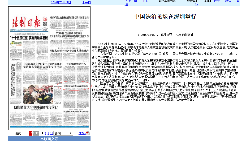法制日報要聞報道中國法治論壇(點擊上面圖片或者左側藍色文字可查看原文報道)