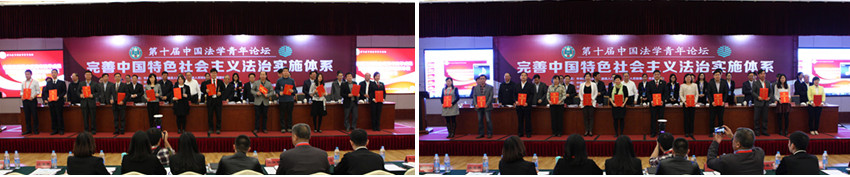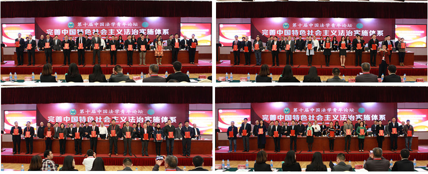與會領導為第十屆中國法學青年論壇主題征文獲獎代表和優秀組織單位頒獎