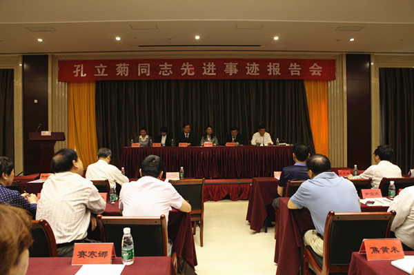 今年49歲的孔立菊同志是遼寧省鞍山市法學會一名副處級女干部。十多年來,該同志在平凡的工作崗位上,愛崗敬業,無私奉獻,特別在身患嚴重疾病的情況下,仍然恪盡職守,與疾病頑強抗爭,把自己的全部力量都奉獻給了法學會事業??琢⒕胀臼腔鶎臃▽W會干部隊伍中的模范代表,是深入開展黨的群眾路線教育實踐活動中涌現出的先進典型。她也是中國法學會恢復重建三十多年來,全國法學會系統學習宣傳的第一個先進典型。報告團的4位同志從不同側面介紹了孔立菊同志的先進事跡。與會人員一致認為,報告會很成功,聽了以后很受啟發、很受教育、令人震撼。