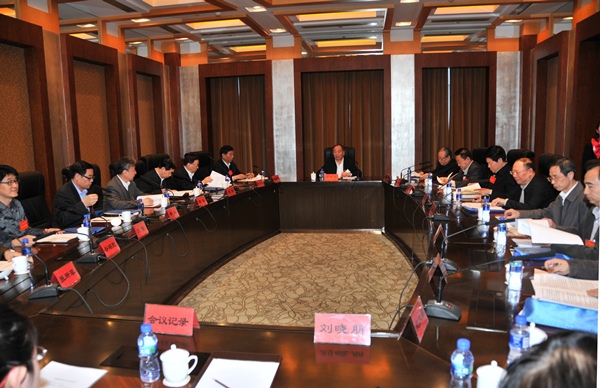 中國法學會常務理事擴大會會前召開會長會議,討論會議議程、工作報告等事項(攝影:孫守森)