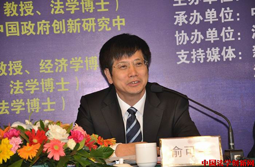 中國法學會黨組書記劉飏常務副會長為評論嘉賓俞可平教授頒發“演講紀念牌”