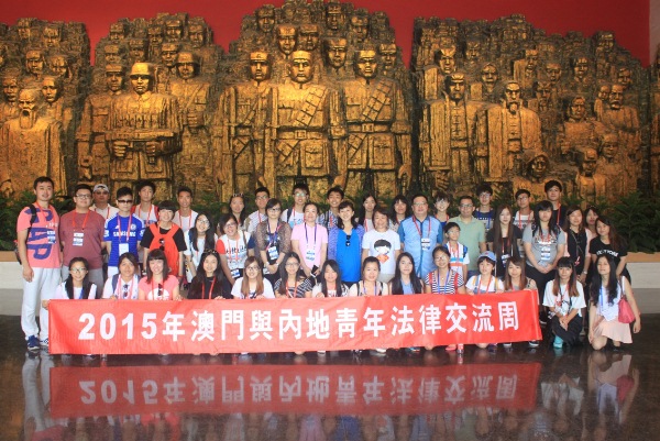 第八屆“‘愛祖國、學法律、創和諧’澳門與內地青年法律交流周”于2015年8月9日至13日在北京成功舉辦。交流周由中國法學會、共青團中央共同主辦,司法部、教育部協辦,澳門特區政府法務局提供協助。來自澳門大學、澳門科技大學等高校法學院學生、教師,以及北京大學、清華大學部分法學院學生共計近60名團員參加活動?;顒舆€得到北京市監獄管理局、北京市未成年犯管教所、北京大學等接待單位的大力配合。活動具體組織工作由中國法學學術交流中心牽頭,與中國法學會法律信息部、中國法學交流基金會合作承擔。