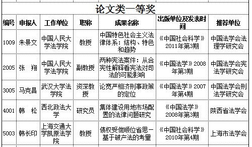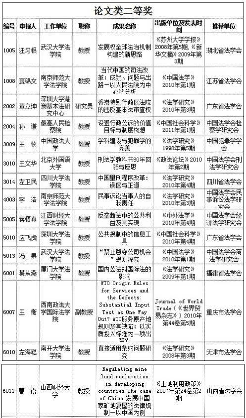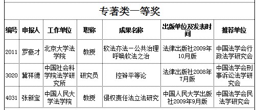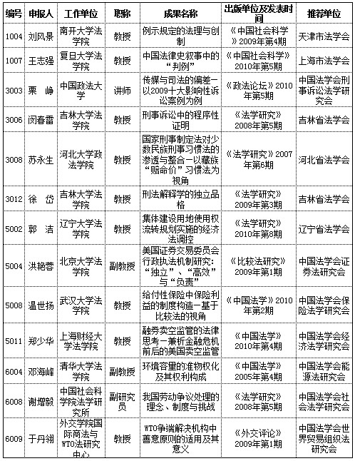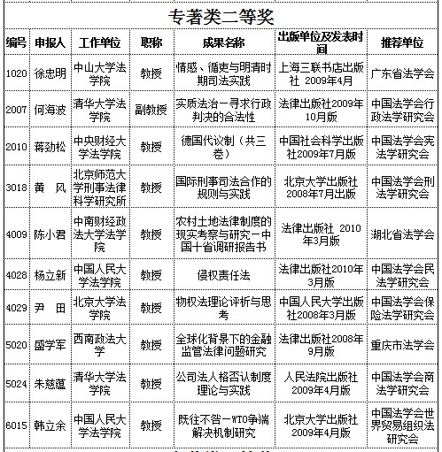 第二屆“中國法學優秀成果獎”獲獎建議名單