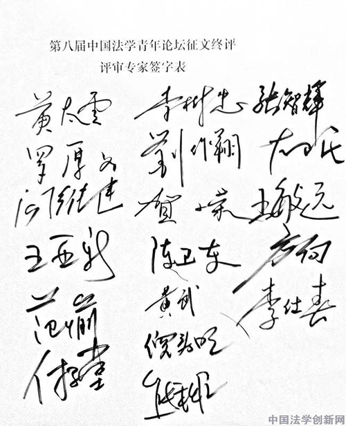 ??????? 經過集中討論,評審委員會最終確定了擬獲一等獎論文30篇、擬獲二等獎論文60篇、擬獲三等獎論文90篇。一等獎論文數(30篇)不足全部有效征文數(3718篇)的0.8%;一、二、三等獎總數(180篇)不足全部有效征文數的4.8%。競爭非常激烈,反復挑選,優中選優。評審專家一致認為,從近4000篇中突圍進入終評的420篇論文都非常優秀,難以取舍。為了鼓勵廣大青年法學法律工作者持續地、更深入地開展法治理論研究,評委會選出擬獲優秀獎論文180篇,而60篇參評論文最終未能獲獎。最后,評審委員會全體成員在評審結果上鄭重地簽下了自己的名字。