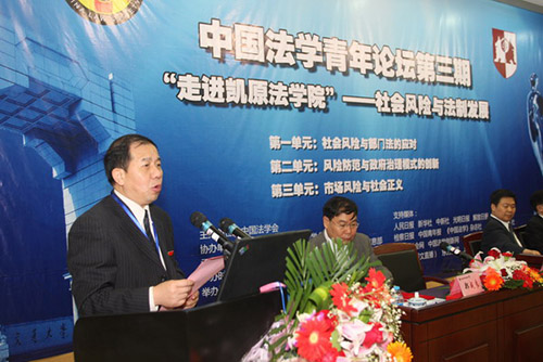 上海交通大學凱原法學院成立的時間很短,我們還很希望得到各兄弟院校大力支持。在跨越式發展過程中,上海交通大學法學院也需要一個平臺,并希望利用這個平臺,我們為國家的法學貢獻自己的力量。這次法學會能夠把各位嘉賓和領導請到我們交通大學,大家一起交流,共同探討有理論價值和現實意義的法學論題,對我們而言是一個很好的學習機會。我相信這將是我們學校的法學院進一步向各位嘉賓,各高校好好學習,同時也能帶動我們法學學術進一步發展。