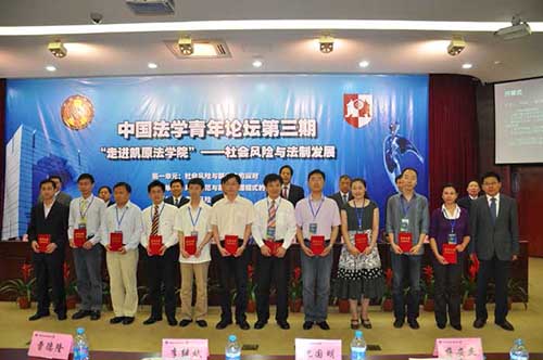 [主持人鄭成良]:下面有請主席臺嘉賓為入選第三期中國青年法學論壇報告論文的作者頒發榮譽證書并合影。? [09:31]