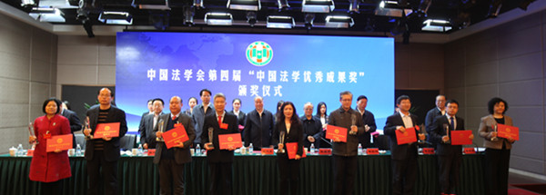 2月28日,第四屆“中國法學優秀成果獎”頒獎儀式在京舉行。中國法學會會長王樂泉,中國法學會黨組書記、常務副會長陳冀平,中央政法委副秘書長雷東生,中國法學會副會長鮑紹坤、張鳴起、張文顯、張蘇軍、王其江、徐顯明等為獲獎作者頒發獎杯和獲獎證書。