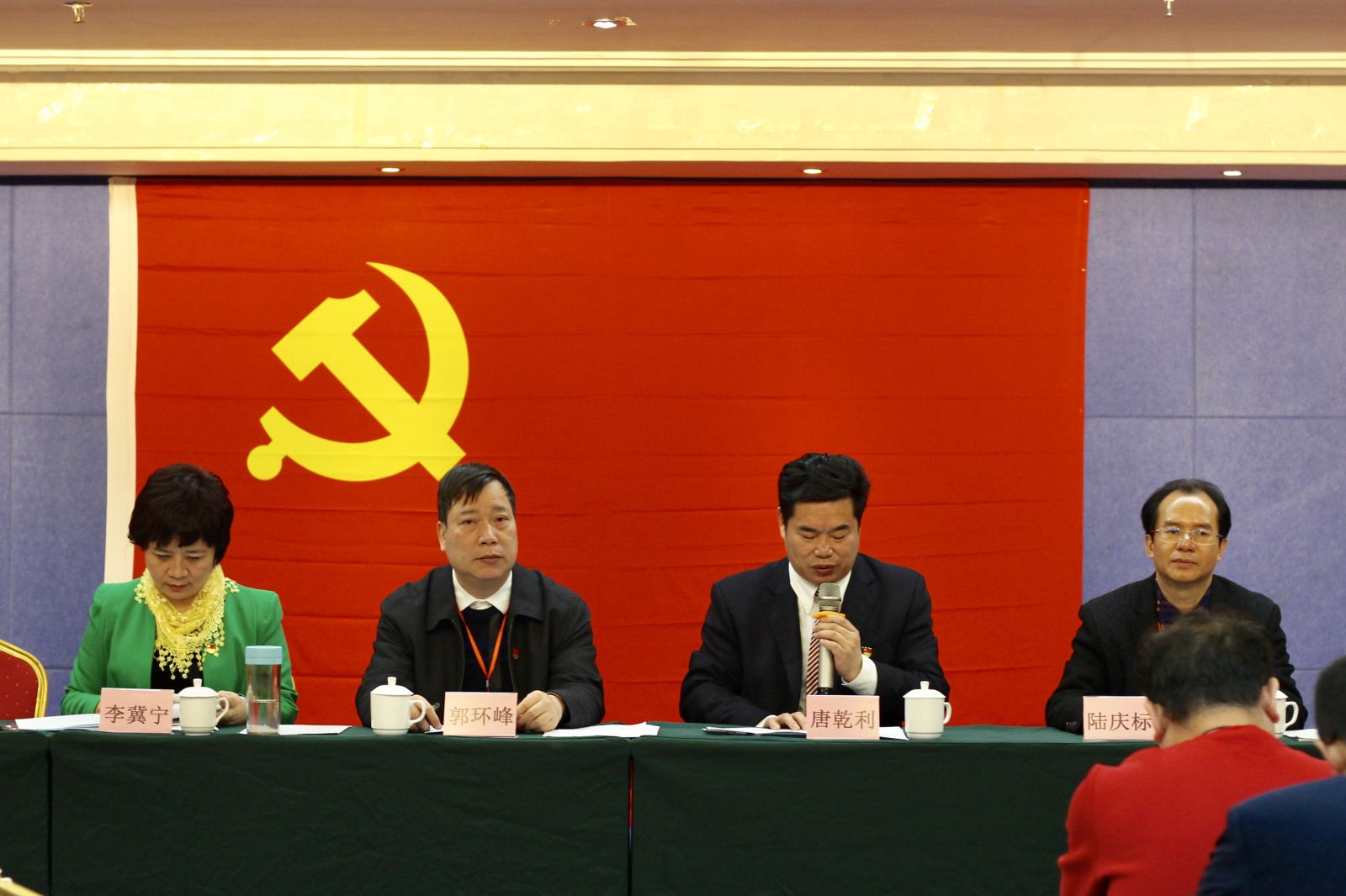 自治區法學研究行業黨委書記郭環峰向新當選的黨委委員們表示祝賀,并指出,廣西衛生法學會要堅持以習近平新時代中國特色社會主義為指導,深入學習貫徹黨的十九大和十九屆二中、三中全會精神,學習貫徹中央和自治區政法工作會議精神以及中國法學會第八次全國會員代表大會精神,樹牢“四個意識”、堅定“四個自信”、做到“兩個維護”,要牢固樹立“黨建強會”意識,加強黨對自治區衛生法學界的全面領導,準確把握新定位新使命,堅持把習近平總書記重要指示批示和黨中央以及自治區黨委的決策部署落實到衛生法學會黨的建設全過程各方面,要充分發揮衛生法學會黨組織的戰斗堡壘作用,把衛生法學會建設成為堅強有力、充滿活力、作風務實的學術團體。