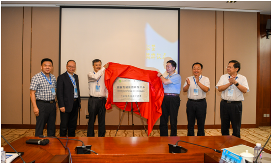 之后,由最高院第一巡回法庭郭修江副庭長、廣東省法學會姜濱副會長、中國政法大學時建中副校長、廣東財經大學杜承銘副校長、深圳大學徐晨副校長、中國人民大學法學院王軼院長共同上臺為“創新發展法治研究中心”揭牌。