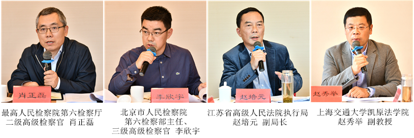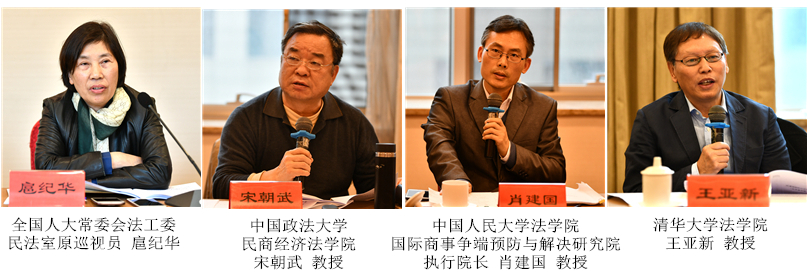 ????????全國人大常委會法工委民法室原巡視員扈紀華,中國法學會民事訴訟法學研究會副會長兼秘書長、中國政法大學民商經濟法學院宋朝武教授,中國法學會民事訴訟法學研究會副會長、中國人民大學法學院國際商事爭端預防與解決研究院執行院長肖建國教授,中國法學會民事訴訟法學研究會常務理事、清華大學法學院王亞新教授,西北政法大學民商法學院董少謀教授,中國政法大學民商經濟法學院副院長楊秀清教授,西南政法大學法學院民事執行研究中心主任馬登科教授,蘇州大學王健法學院訴訟法學教研室主任張永泉教授,最高人民檢察院第六檢察廳二級高級檢察官肖正磊,北京市人民檢察院第六檢察部主任、三級高級檢察官李欣宇,江蘇省高級人民法院執行局趙培元副局長,上海交通大學凱原法學院趙秀舉副教授參加會議并發表修改建議。清華大學法學院副院長程嘯教授提交了書面意見。