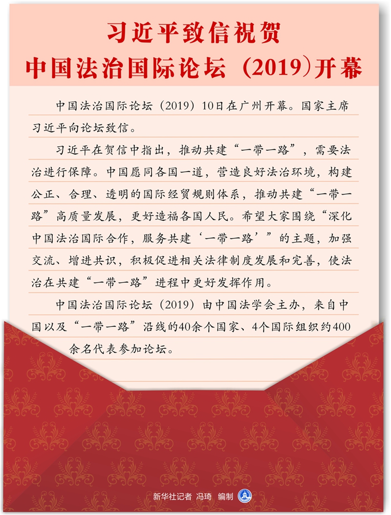 中國法治國際論壇(2019)10日在廣州開幕。國家主席習近平向論壇致信。