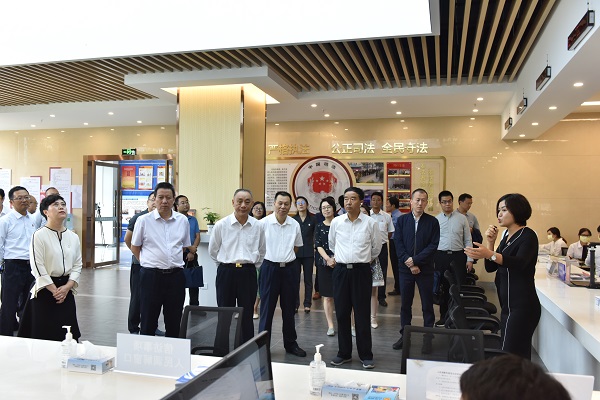 中國法學會黨組書記、常務副會長陳訓秋率隊調研。省委常委、省委政法委書記、省法學會會長張太原,省人民檢察院檢察長王光輝參加調研。