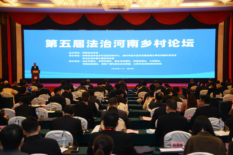 11月6日,由河南省法學會主辦,河南省法學會鄉村法治研究中心、鄭州市金水區宋砦村黨總支、鄭州弘潤華夏大酒店黨支部承辦,以“民法典實施與鄉村振興”為主題的第五屆法治河南鄉村論壇在鄭州舉行。河南省人大常委會原主任任克禮,全國人大外事委員會原副主任委員、全國人大常委會原副秘書長曹衛洲,原全國人大內務司法委員會副主任委員、全國人大常委會原副秘書長何曄暉,河南省人大常委會原副主任李志斌,河南省人大常委會原副主任,省現代農業研究會會長劉新民,中國老齡發展基金會理事長于建偉,河南省紀委副書記、省監委副主任,省法學會副會長劉荃,河南省委政法委常務副書記,省法學會黨組書記、常務副會長沈慶懷,河南省社會科學院副院長,省法學會副會長王承哲等出席論壇開幕式。省法學會黨組成員、副會長兼秘書長雷忠旺主持開幕式。