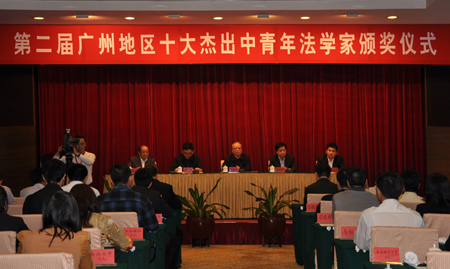 2013年3月22日,第二屆“廣州地區十大杰出中青年法學家”頒獎儀式在廣東舉行。中國法學會黨組書記、常務副會長陳冀平,市委常委、政法委書記吳沙等領導出席并作了講話。市人大常委會主任張桂芳出席會議。