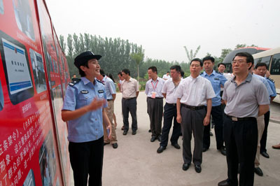 9月1日至2日,由中央政法委政法研究所、公安部法制局共同主辦的首屆“執法公信力”論壇在河北省霸州市舉行。圖為與會代表實地考察河北省霸州市公安局執法規范化建設情況。(攝影 王建軍)
