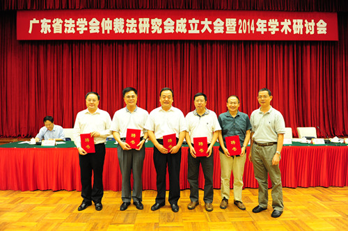 2014年9月10日,廣東省法學會仲裁法研究會成立大會暨2014年學術研討會在廣州舉行。會議選舉產生了第一屆理事會成員,并舉行了首次學術研討會。廣東省法學會會長,省政協黨組副書記、副主席梁偉發出席會議并作講話。來自省內各有關高校、法律實務部門等單位80余名代表參加了會議。