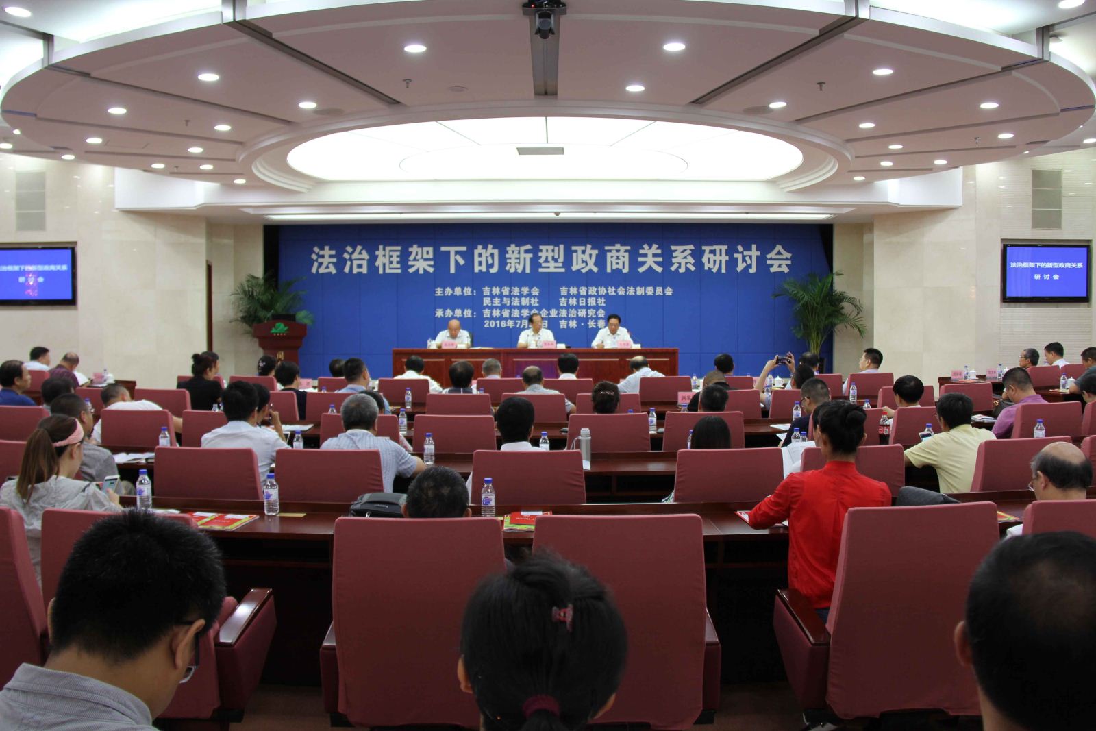 ? ? ? ? 7月25日,由吉林省法學會、吉林省政協社法委、民主與法制社、吉林日報社聯合主辦的法治框架下的新型政商關系研討會在長春召開。中國法學會黨組成員、副會長張蘇軍出席并講話。吉林省法學會會長李申學出席并致辭。吉林省政協黨組副書記、副主席王爾智主持并作總結講話。中央民族大學法治政府與地方制度研究中心主任、教授、博士生導師授熊文釗,吉林大學常務副校長、教授、博士生導師邴正,北京金杜律師事務所合伙人、律師吳巍,吉林省政協社法委副主任、省法學會副會長李大法,吉林省司法廳副廳長禹治洪,吉林省通化市委常委、紀委書記張茗朝,長春市檢察院副檢察長胡金剛,吉林大學法學院教授、博士生導師徐衛東,吉林省河南商會會長、長春鼎慶經貿有限公司董事長李萬升發言,圍繞如何實現習近平總書記提出的建立以“親”、“清”為遵循的新型政商關系的主題進行了研討。