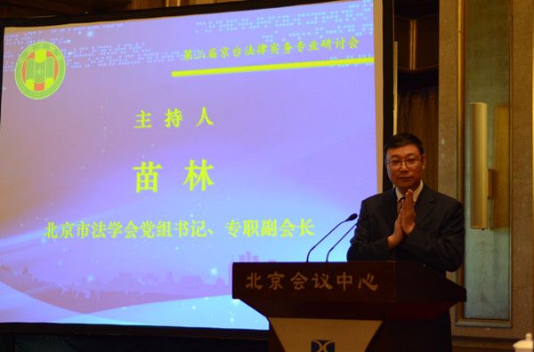 ??????? 為促進京臺兩地法律實務界交流與合作,2016年8月27日,第二屆京臺法律實務專業研討會在北京會議中心隆重召開。中國法學會黨組成員、副會長張鳴起,中國法學會學術交流中心主任尹寶虎,國臺辦投訴協調局局長王剛,國臺辦法規局副局長唐正瑞,北京市委政法委副書記魯為,北京市法學會黨組書記、專職副會長苗林,北京市法學會專職副會長杜石平,北京市法學會專職副會長兼秘書長謝超,北京市臺辦副主任于鳳英,臺灣法曹協會理事長高思博,臺灣中華民族團結協會理事長夏瀛洲等嘉賓出席了研討會開幕式。張鳴起副會長、王剛局長、魯為副書記、于鳳英副主任、高思博理事長、夏瀛洲理事長等代表各方在開幕式上致辭。來自北京政法各部門領導、法學機構學者、法律實務人士和在京臺灣的企業代表和法務人士近150人參加了會議。北京市法學會黨組書記、專職副會長苗林主持了會議。