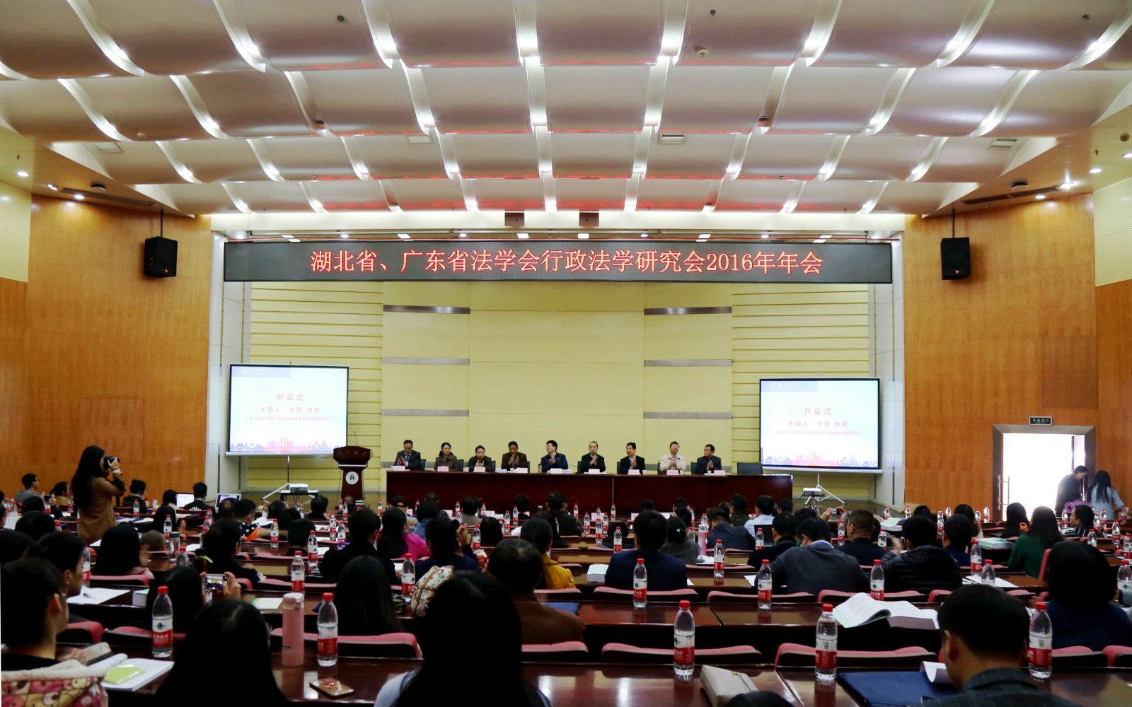 ? ? ? ? 11月12日,湖北省、廣東省法學會行政法學研究會2016年年會在湖北大學召開。湖北省法學會黨組書記、常務副會長萬學斌出席會議并講話。湖北省政府法制辦黨組書記、主任張紹明,湖北大學黨委常委、副校長錢建國,中國法學會行政法學研究會副會長、湖北省法學會行政法學研究會名譽會長方世榮,廣東省法學會副秘書長薛曉光,湖北省法學會行政法學研究會會長曹海晶,廣東省法學會行政法學研究會會長劉恒,湖北大學政法與公共管理學院黨委書記鄭全新等出席會議。來自湖北與廣東地區理論與實務部門的專家學者200余人參加了會議。