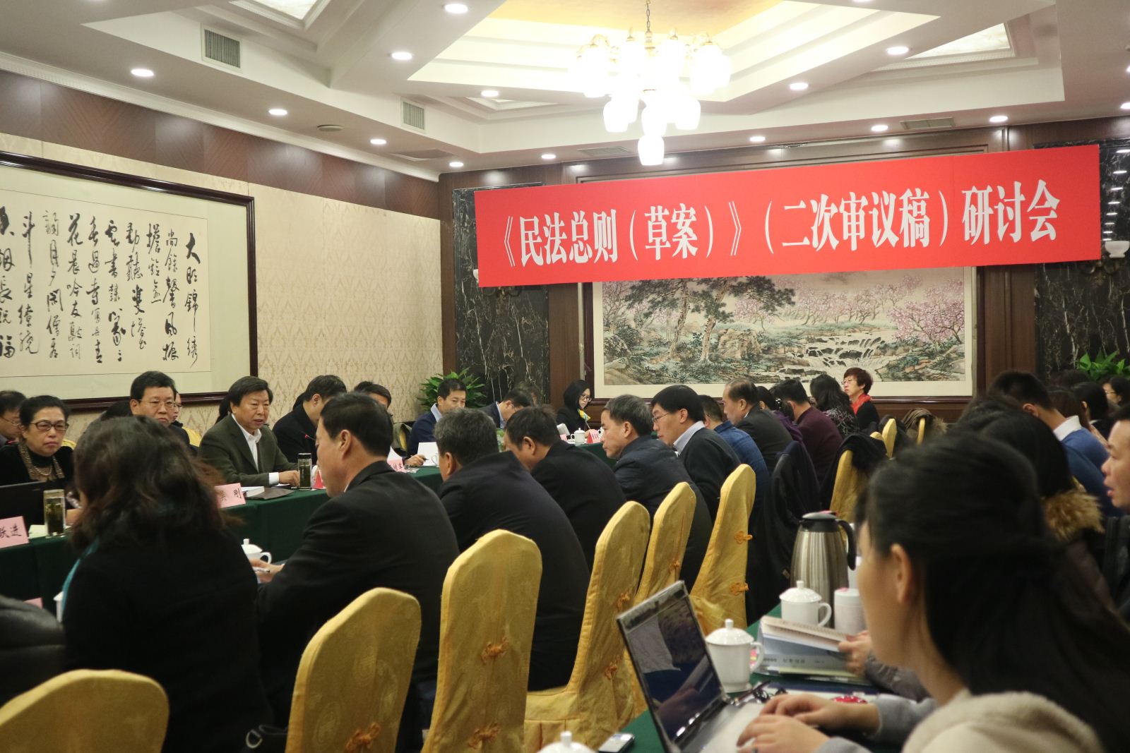 ? ? ? ? 2016年12月10日上午,由山西省法學會、山西省法學會民法學研究會、山西大學法學院聯合舉辦的“《民法總則(草案)》(二次審議稿)研討會”在省城太原迎澤賓館召開。山西省人大法制委員會主任委員、山西省人大常委會法工委主任鄧永明,山西省法學會專職副會長兼秘書長吳剛出席會議并講話。山西省法學會副會長、山西大學法學院教授王繼軍,山西省法學會副會長、山西財經大學法學院教授馬躍進,山西省司法廳副巡視員、山西大學法學院兼職教授郝嘵琴,山西律師協會會長高劍生等五十余位山西省法學、法律界專家學者參加了研討會。會議由山西省法學會民法學研究會常務副會長、省高級人民法院審委會委員、民二庭庭長鄧一峰主持。