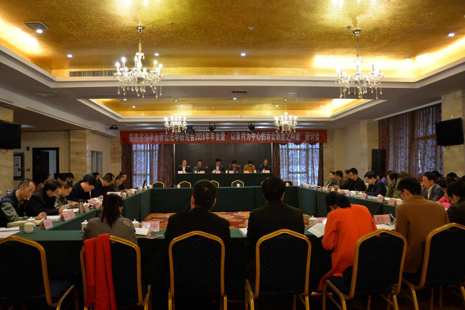 ? ? ? ? 12月9日,福建省法學會訴訟法學研究會2016年年會暨“以審判為中心的訴訟制度之構建”研討會在南平召開。福建省法學會訴訟法學研究會會長、福建省高級人民法院黨組成員、審判委員會專職委員段思明,福建省法學會訴訟法學研究會副會長、南平市人民檢察院檢察長王金文,福建省法學會副秘書長、研究部主任謝美琴,福建省法學會副秘書長、研究部調研員姚國祥,中共福建省委政法委政研宣傳處調研員柯建民,福建省法學會訴訟法學研究會副會長、秘書長、福建省高級人民法院審判委員會委員、研究室主任石志藩等領導出席會議,訴訟法學研究會理事、部分優秀論文代表近40余人參加會議。