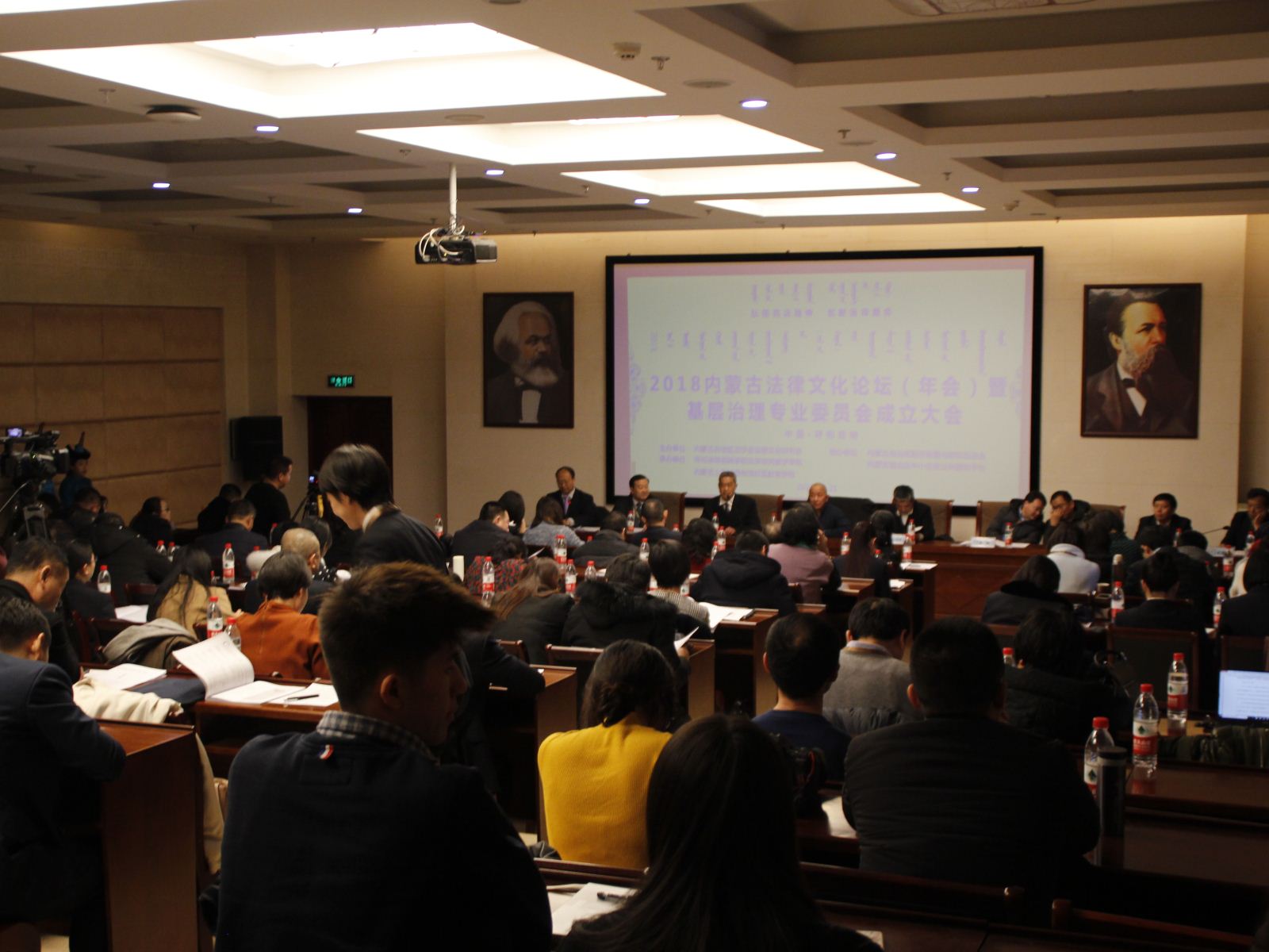 12月21日下午,“2018內蒙古法律文化論壇年會暨基層治理專業委員會成立大會”在呼和浩特民族學院舉行